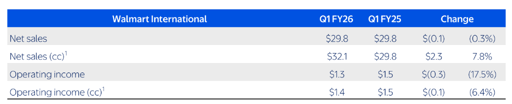 沃尔玛国际业务销售额298亿美元,按固定汇率计算增长7.8%,但运营利润下降17.5%至12.6亿美元。这一下滑主要是由于公司对Flipkart、Walmex和加拿大市场的战略性增长投资所致。